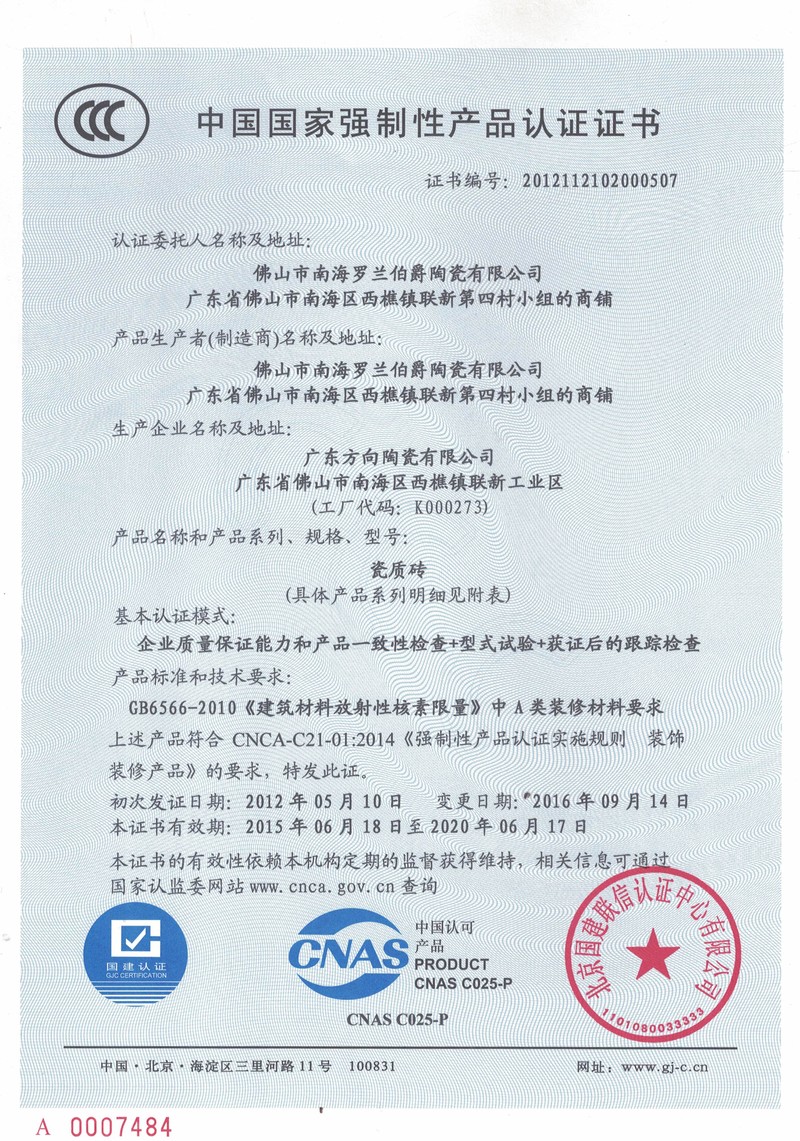 方向CCC認(rèn)證證書(shū)